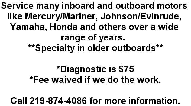 | Hours of Operation Mon-Fri 8:30AM-4:30PM Saturday 9-3PM Closed on Sunday. However, you may still be able to drop off your boat for servicing. Conveniently located at 1114 W. 4th St (US 12) Michigan City, IN 46360 219-874-4086 |
